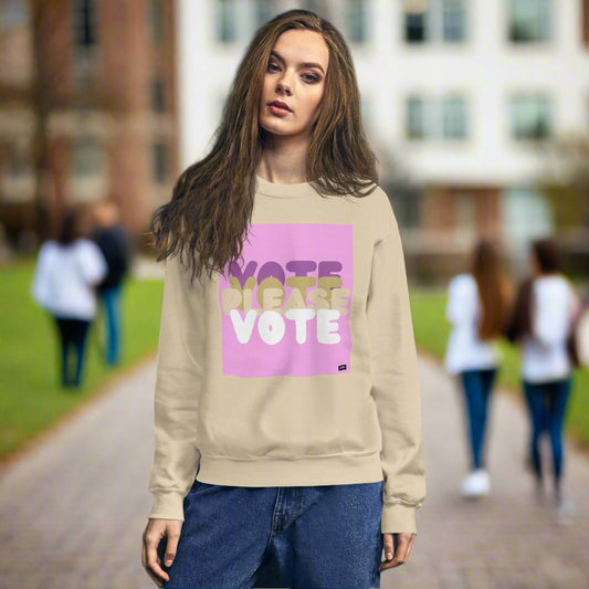 Please Vote in Pink Unisex Crew Neck Sweatshirt - Available in Assorted Colors
