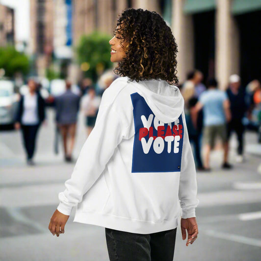 Please Vote Unisex Zip-Up Hoodie - Available in Assorted Colors