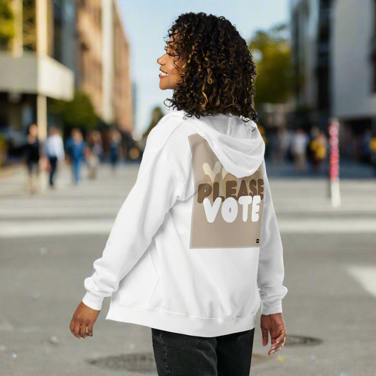 Please Vote in Brown Unisex Zip-Up Hoodie - Available in Assorted Colors
