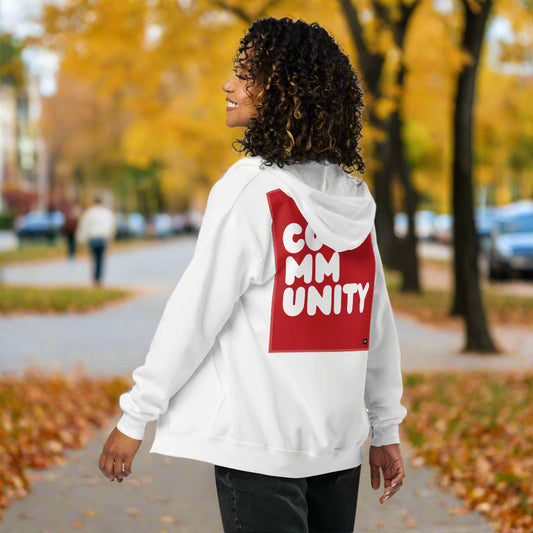 Community in Red and White Premium Unisex Zip-Up Hoodie