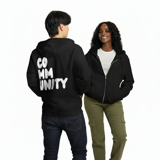 Community in Black and White Premium Unisex Zip-Up Hoodie
