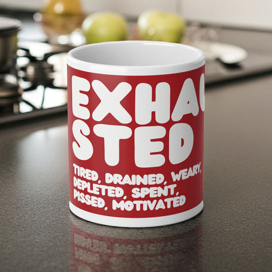 Exhausted in Red and White Jumbo Mug - 20oz Mug