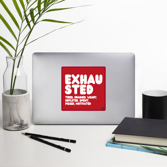 Exhausted in Red and White Vinyl Sticker