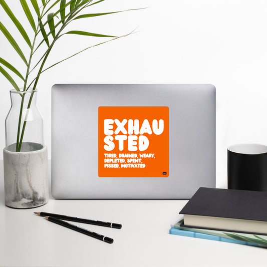 Exhausted in Orange and White Vinyl Sticker