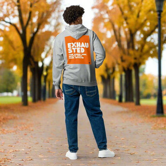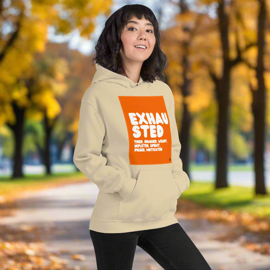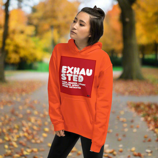 Exhausted in Orange and White Unisex Hoodie - Available in Assorted Colors