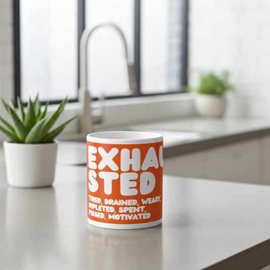 Exhausted in Orange and White Jumbo Mug - 20oz Mug