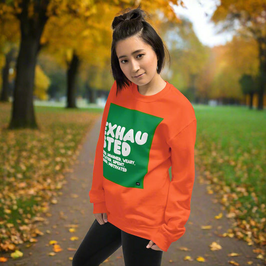 Exhausted in Green and White Unisex Crew Neck Sweatshirt - Available in Assorted Colors