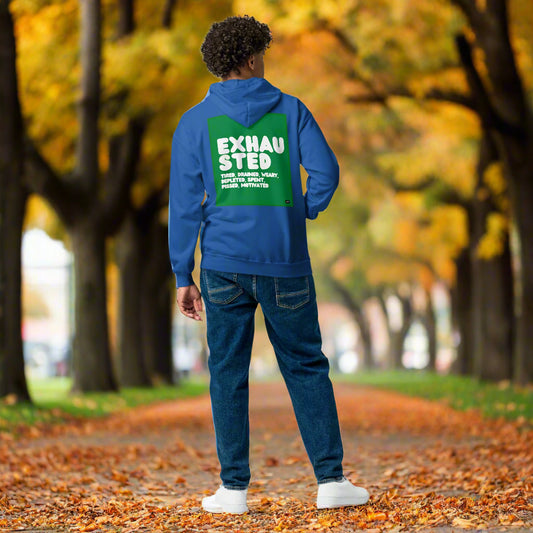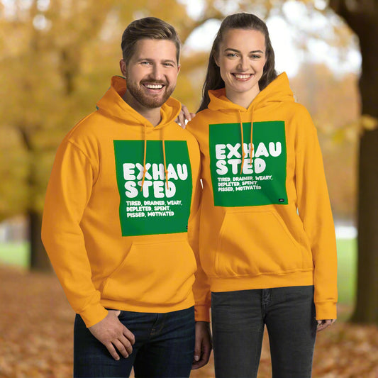 Exhausted in Green and White Unisex Hoodie - Available in Assorted Colors