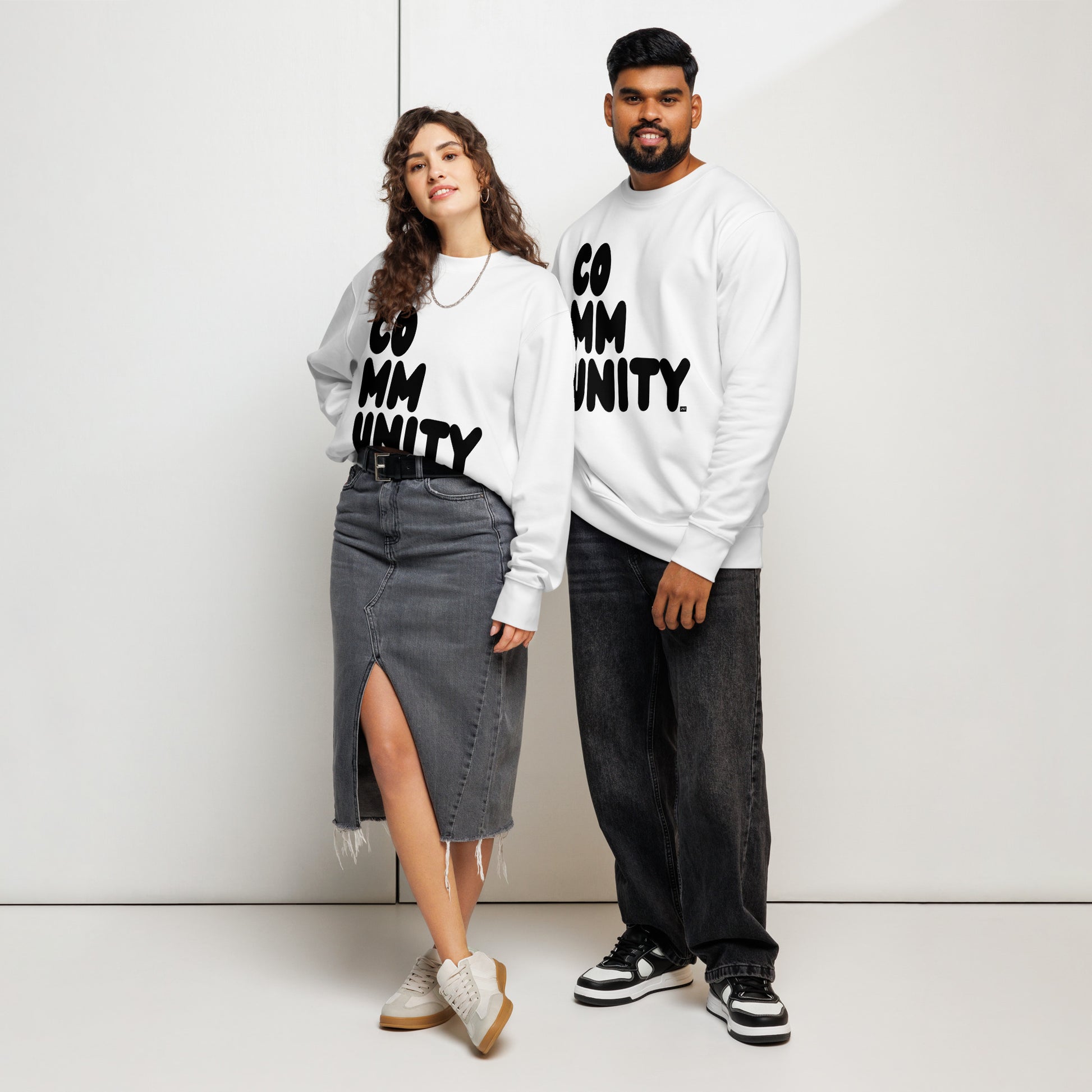 Sweatshirt Brand: The Community in Black and White Premium Unisex White Crew Neck Sweatshirt is printed on a Stanley/Stella brand sweatshirt.