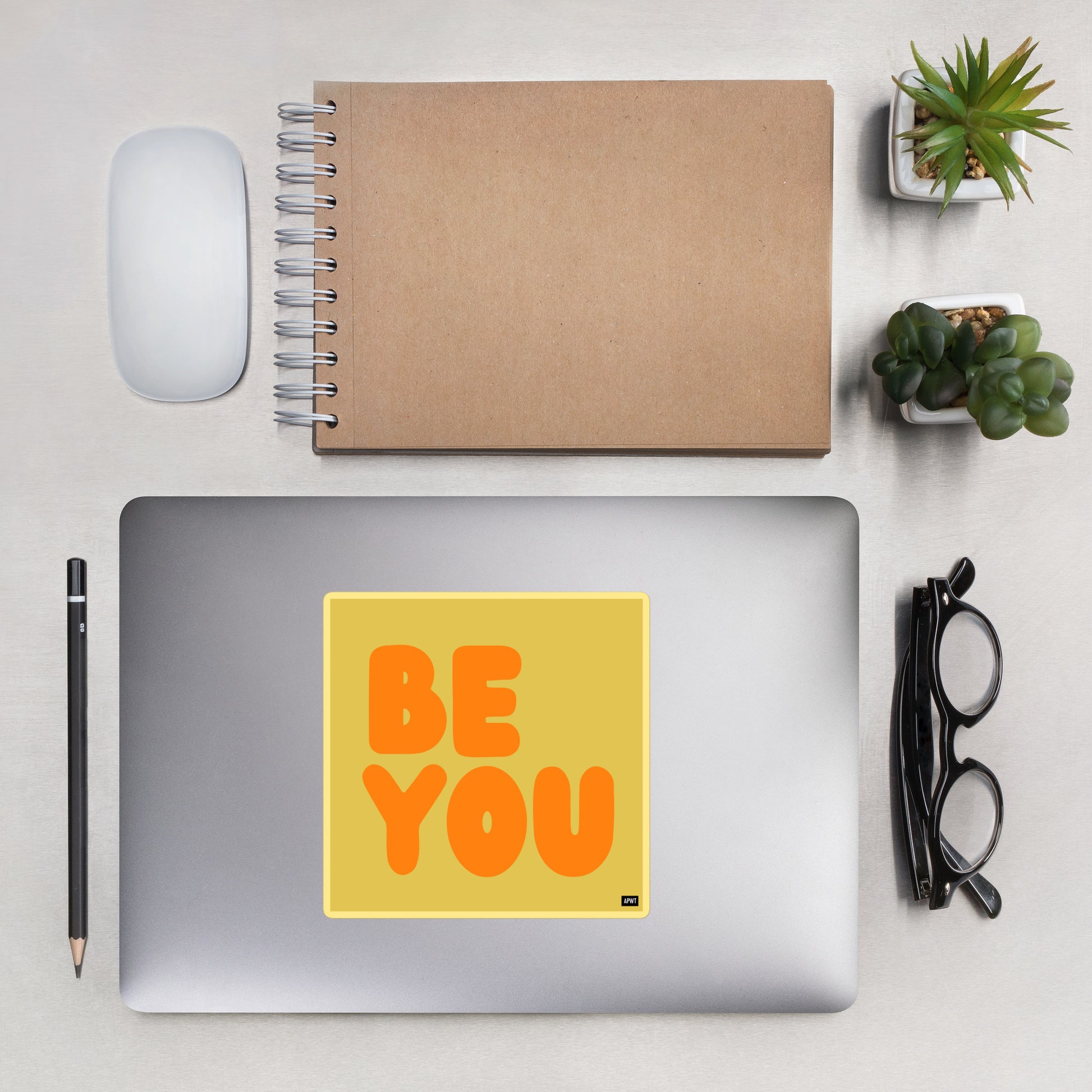 The Be You in Yellow and Orange Vinyl Sticker from the Fall/Winter line of the Be You Collection offers a bright, uplifting design to inspire confidence and authenticity. Perfect for personalizing laptops, notebooks, doors, or windows, it encourages self-expression and promotes supportive, inclusive environments wherever it’s displayed. Let this vibrant sticker serve as a daily reminder to embrace your true self with pride.