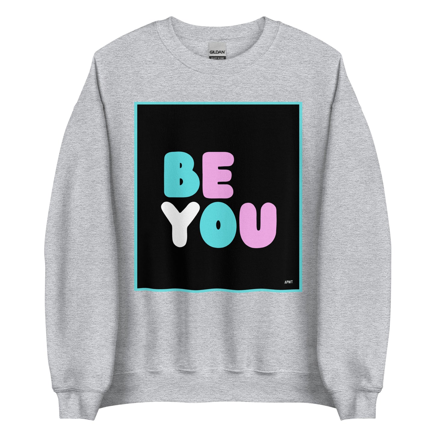Design: Be You T Unisex Crew Neck Sweatshirt image is an original design by the APWT Design Team. The color combinations, image size, and sweatshirt fit were selected and designed to showcase the image but also be fun and stylish.