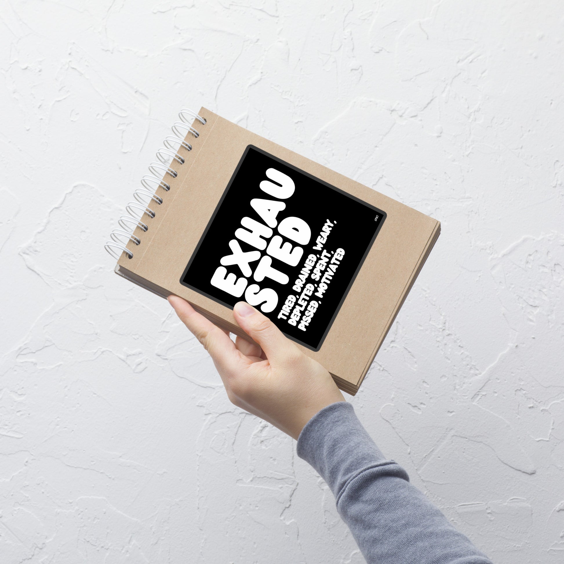 The Exhausted in Black and White Vinyl Sticker from the Fall/Winter line of the Exhausted Collection, carries a powerful message of perseverance. Its bold, but fun design lets you express honesty and resilience, reminding you and those around you that feeling tired is okay, but it doesn’t have to hold you back. Perfect for personal spaces or belongings, this sticker inspires strength in moments of fatigue.