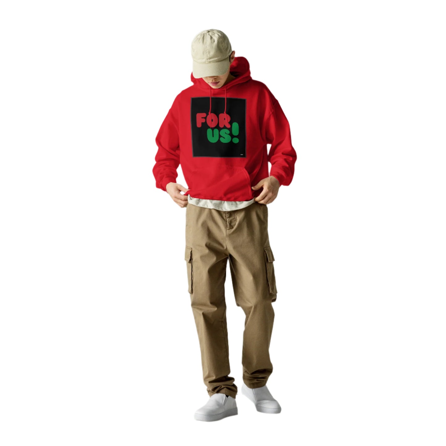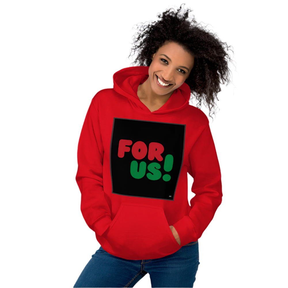 Make a statement with our For Us in Black Unisex Hoodie. Featuring the colors of the Pan-African Flag, this hoodie promotes unity and collaboration within the Black community. Available in assorted colors, it's a stylish and meaningful addition to your wardrobe.