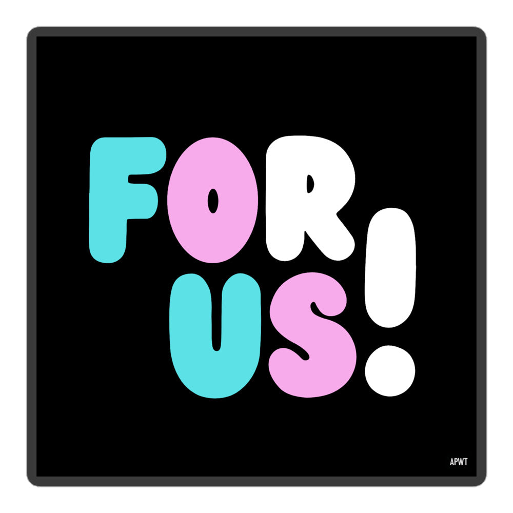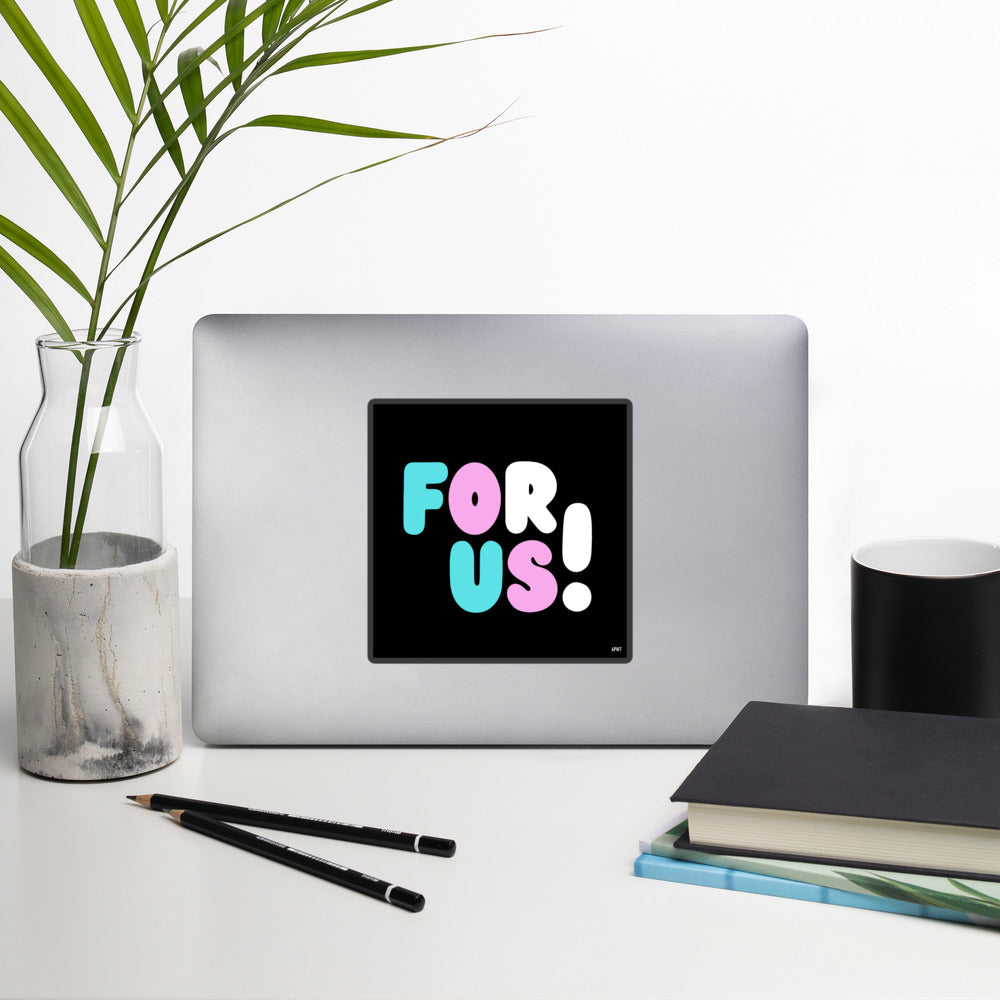 Promote community with our For Us with a T Vinyl Sticker. Featuring the colors of the Trans Pride Flag, this sticker is a symbol of pride, solidarity, and inclusivity. Perfect for notebooks, laptops, and more.