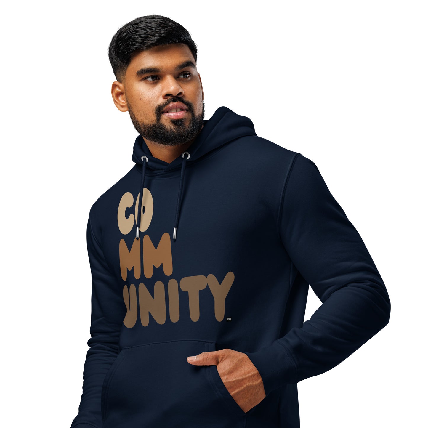 Our Community Premium Unisex Hoodie from the Community Collection offers warmth and style, with a purpose. Made from 80% organic cotton and 20% recycled polyester, it combines comfort with sustainability. The design features a meaningful message of community in shades of brown, symbolizing unity and collective well-being. Available in black and navy blue, in sizes S to 3XL, this hoodie is a comfortable, stylish way to carry a meaningful message wherever you go.