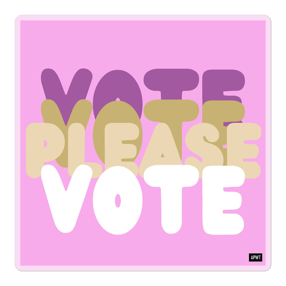 Design: The Please Vote in Pink Sticker image is an original design by the APWT Digital Design Team