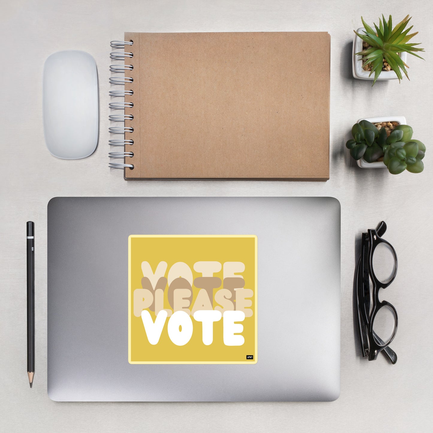 Design: The Please Vote in Yellow Sticker image is an original design by the APWT Digital Design Team