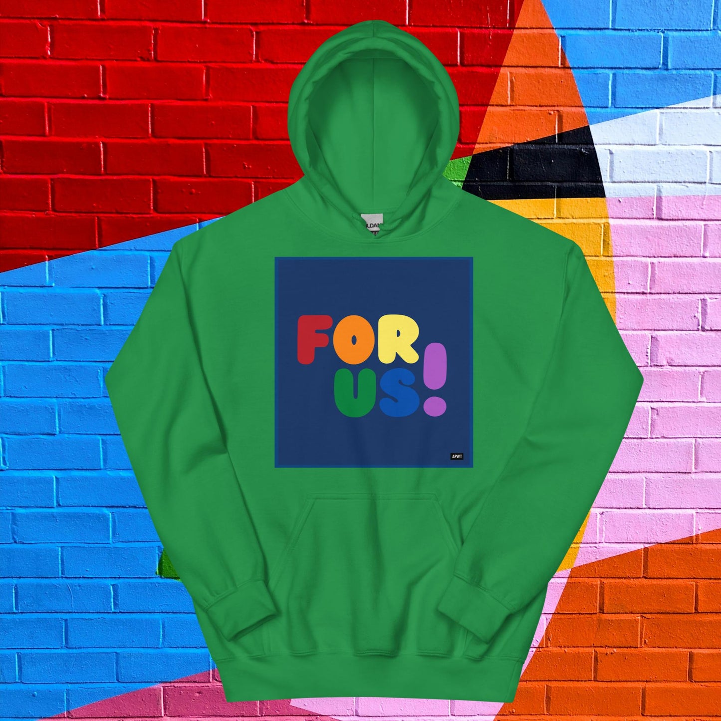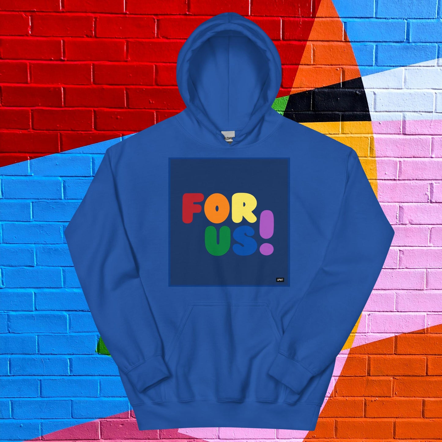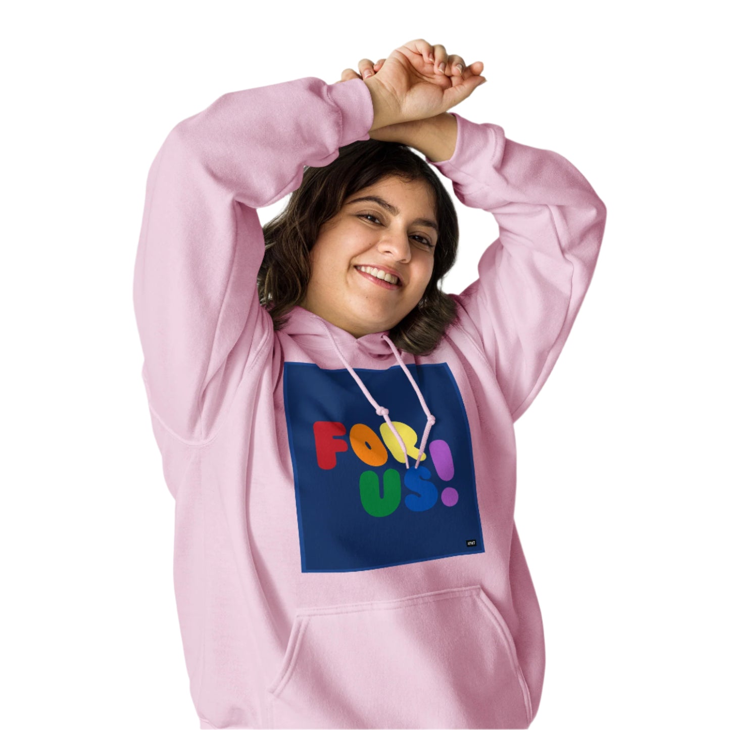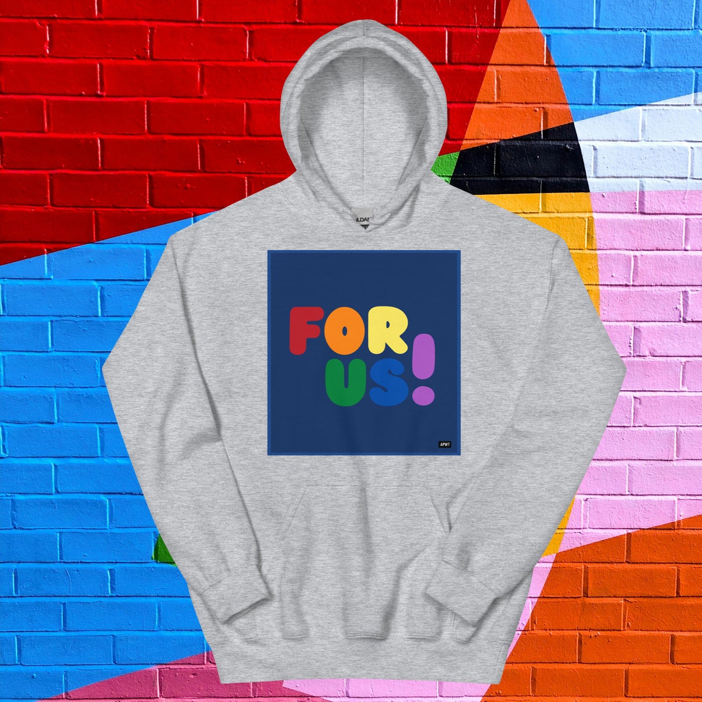 The Rainbow For Us Unisex Hoodie from our For Us Collection showcases our message in the colors of the LGBTQ+ Pride Flag, making a statement of inclusivity and community. Wear it with pride or in solidarity, this hoodie is a stylish and meaningful addition to your wardrobe.