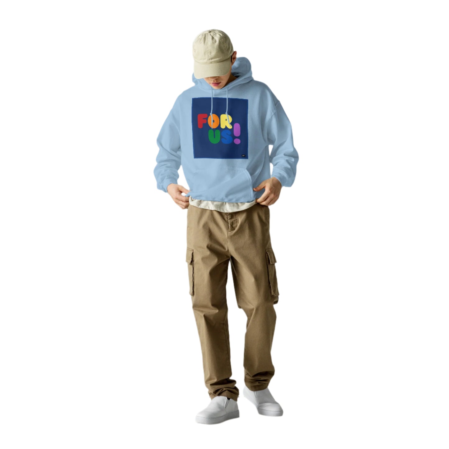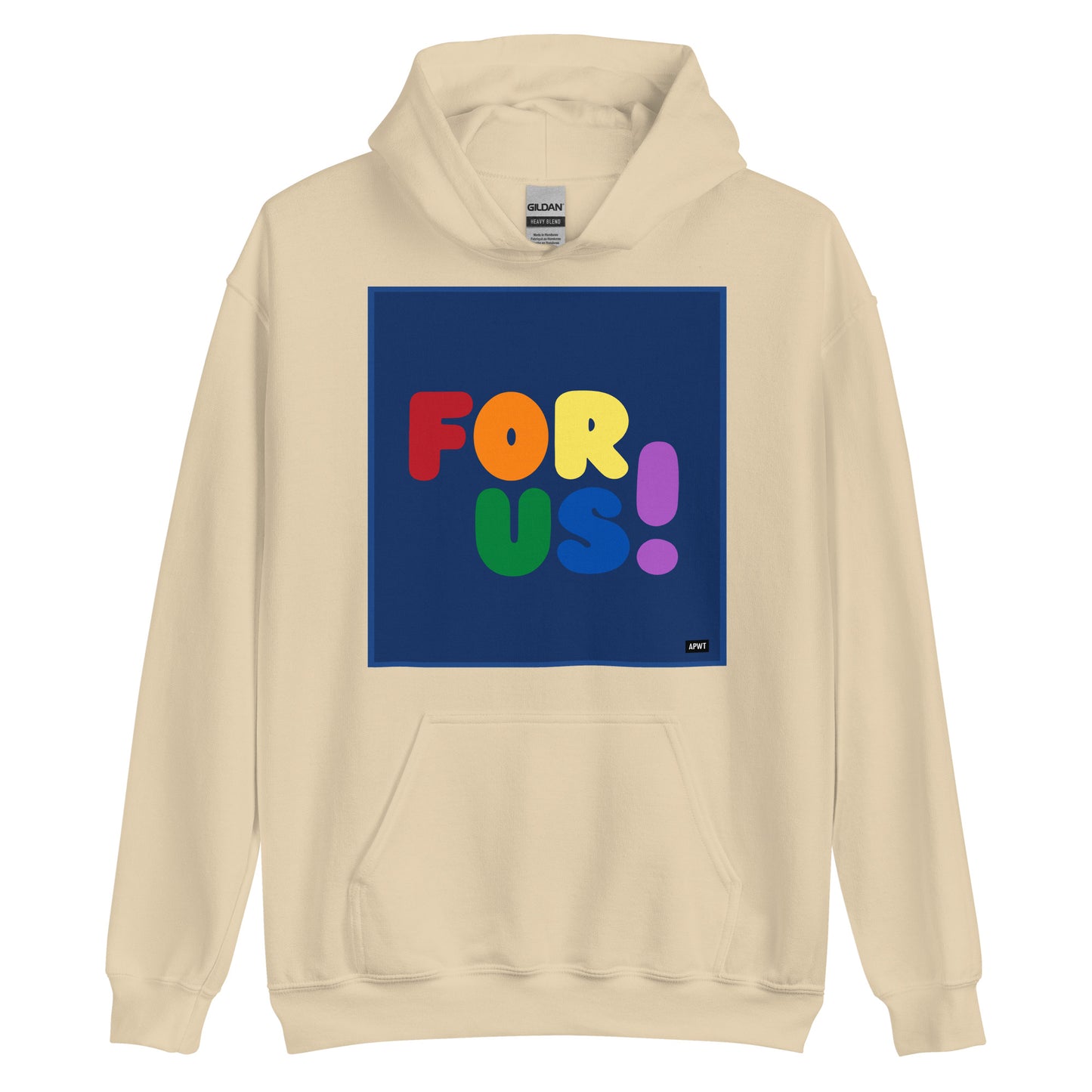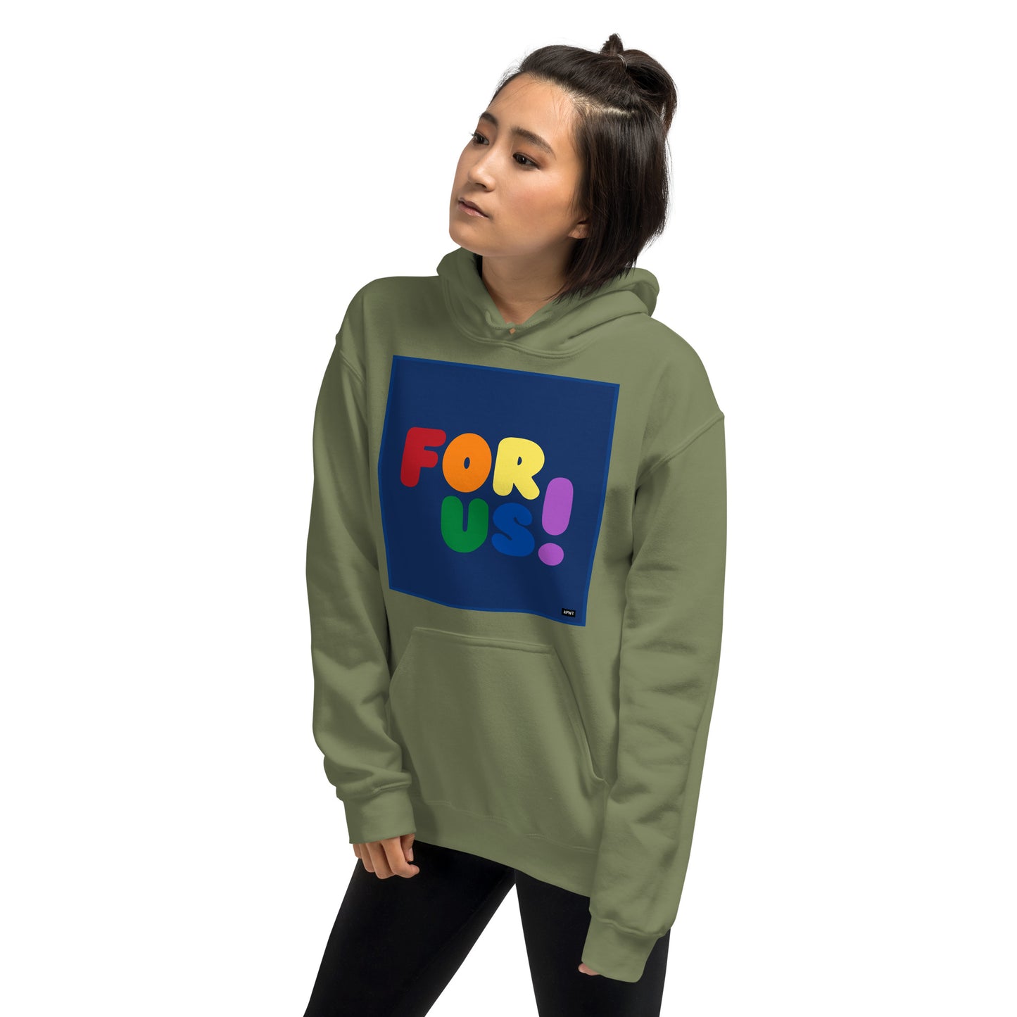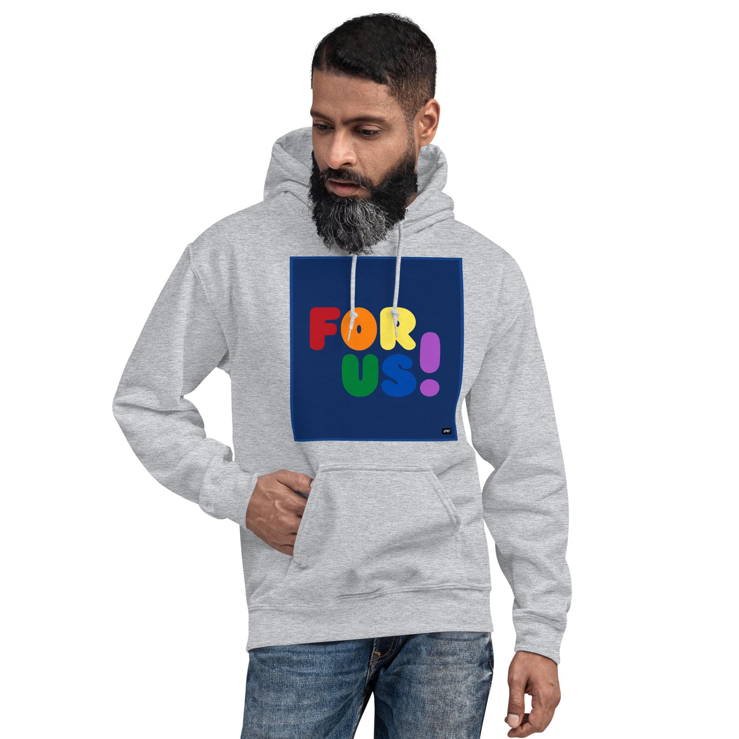 The Rainbow For Us Unisex Hoodie from our For Us Collection showcases our message in the colors of the LGBTQ+ Pride Flag, making a statement of inclusivity and community. Wear it with pride or in solidarity, this hoodie is a stylish and meaningful addition to your wardrobe.