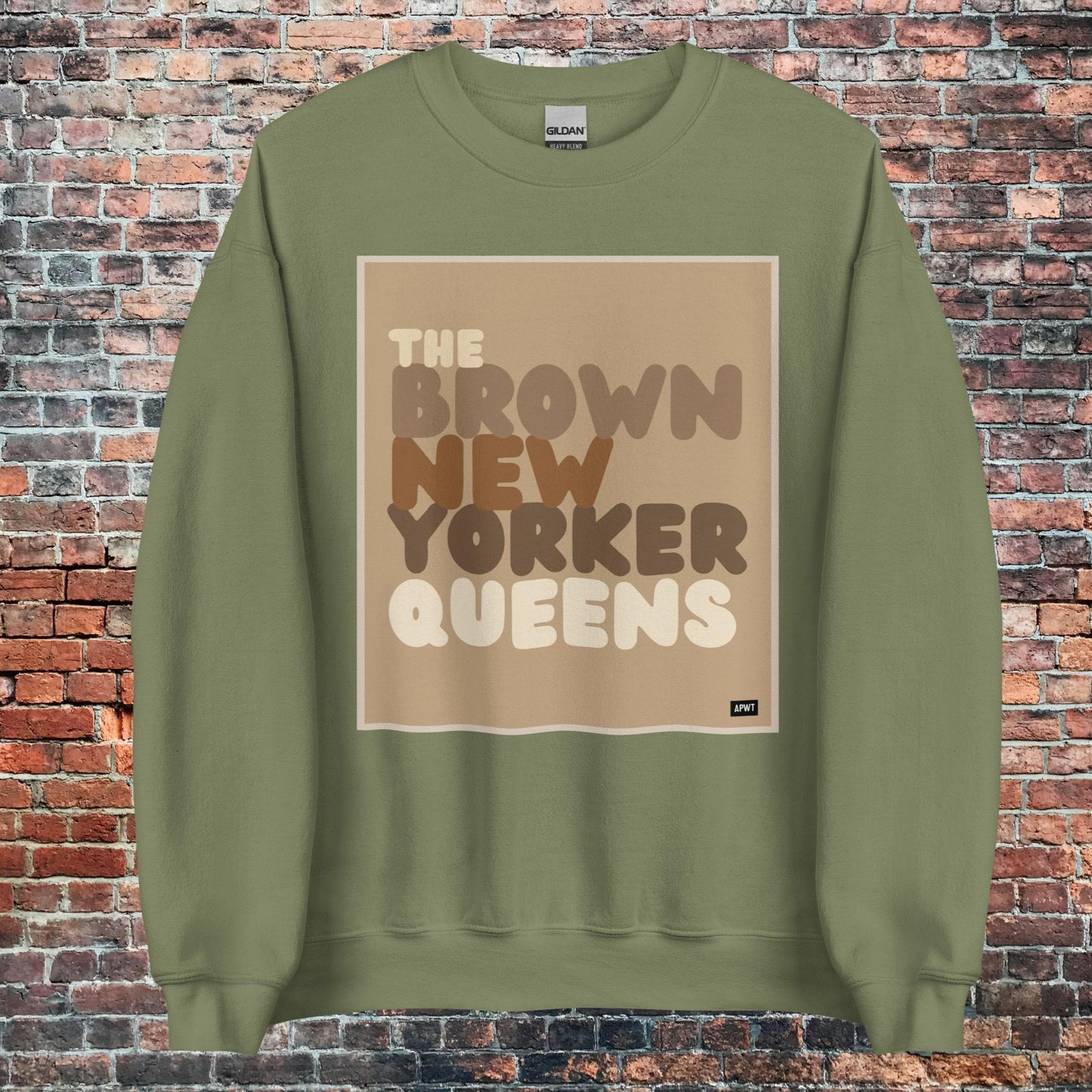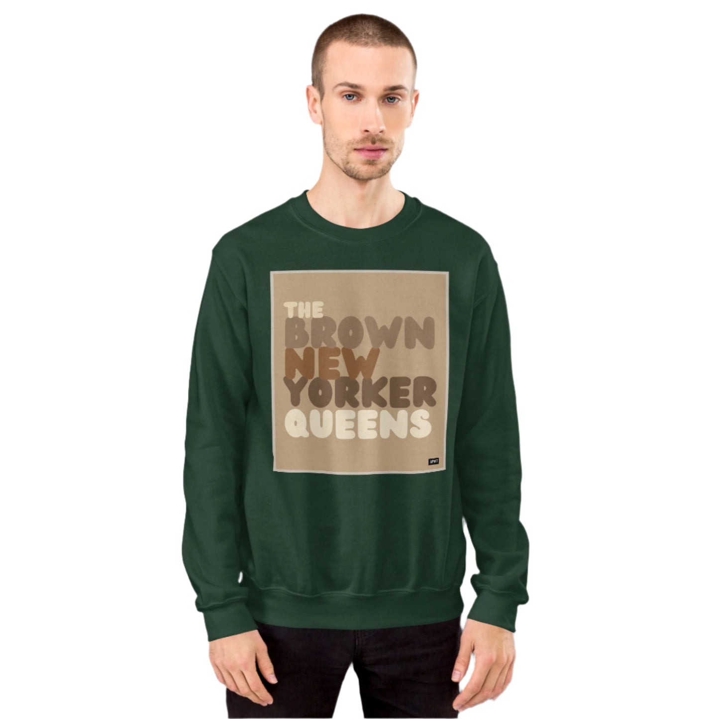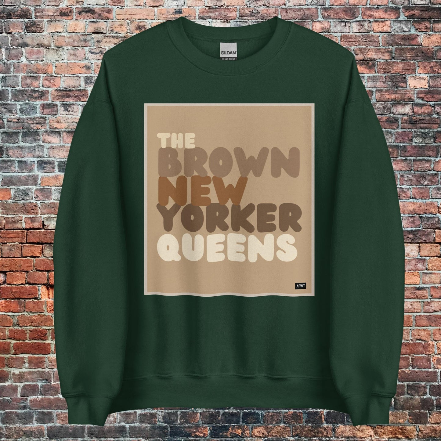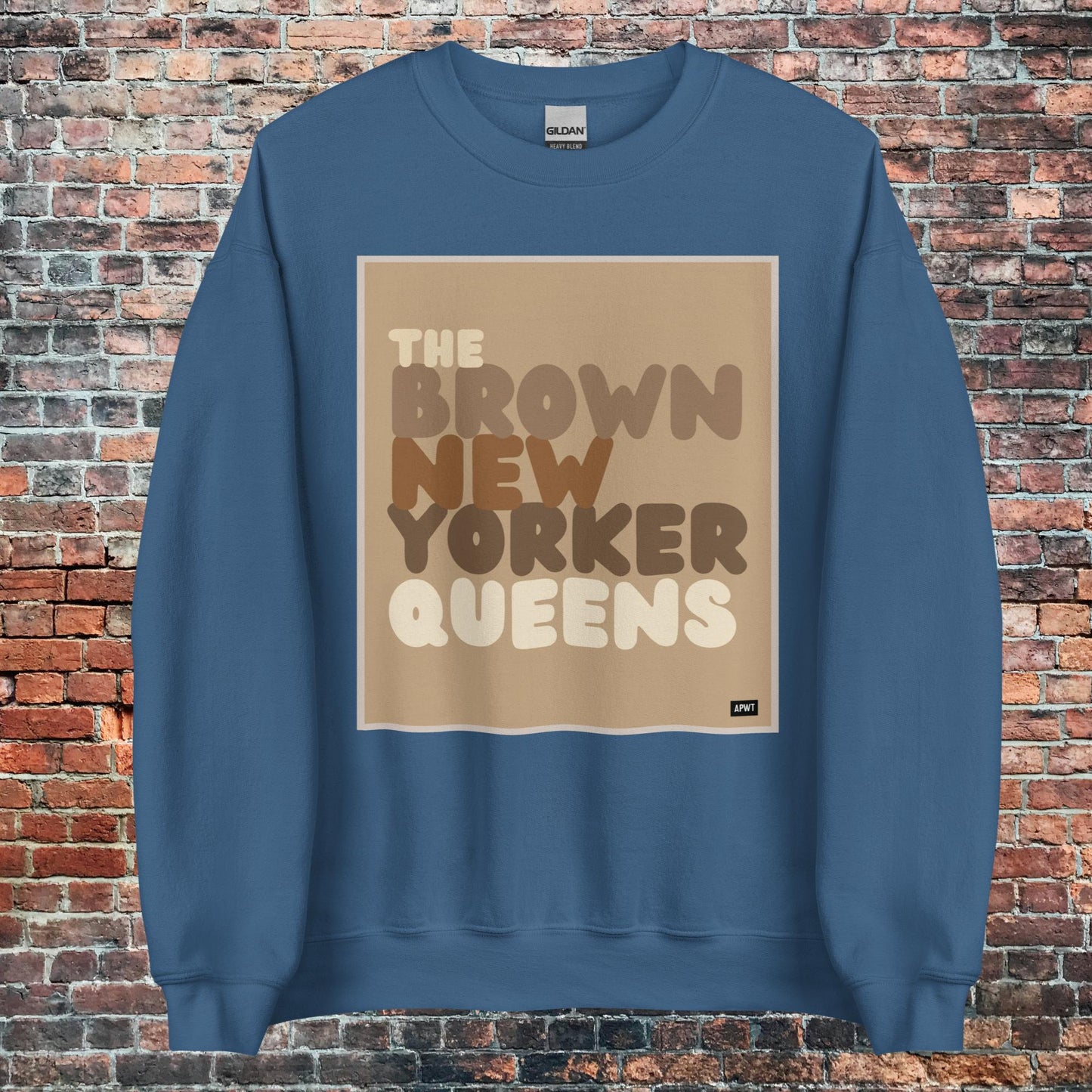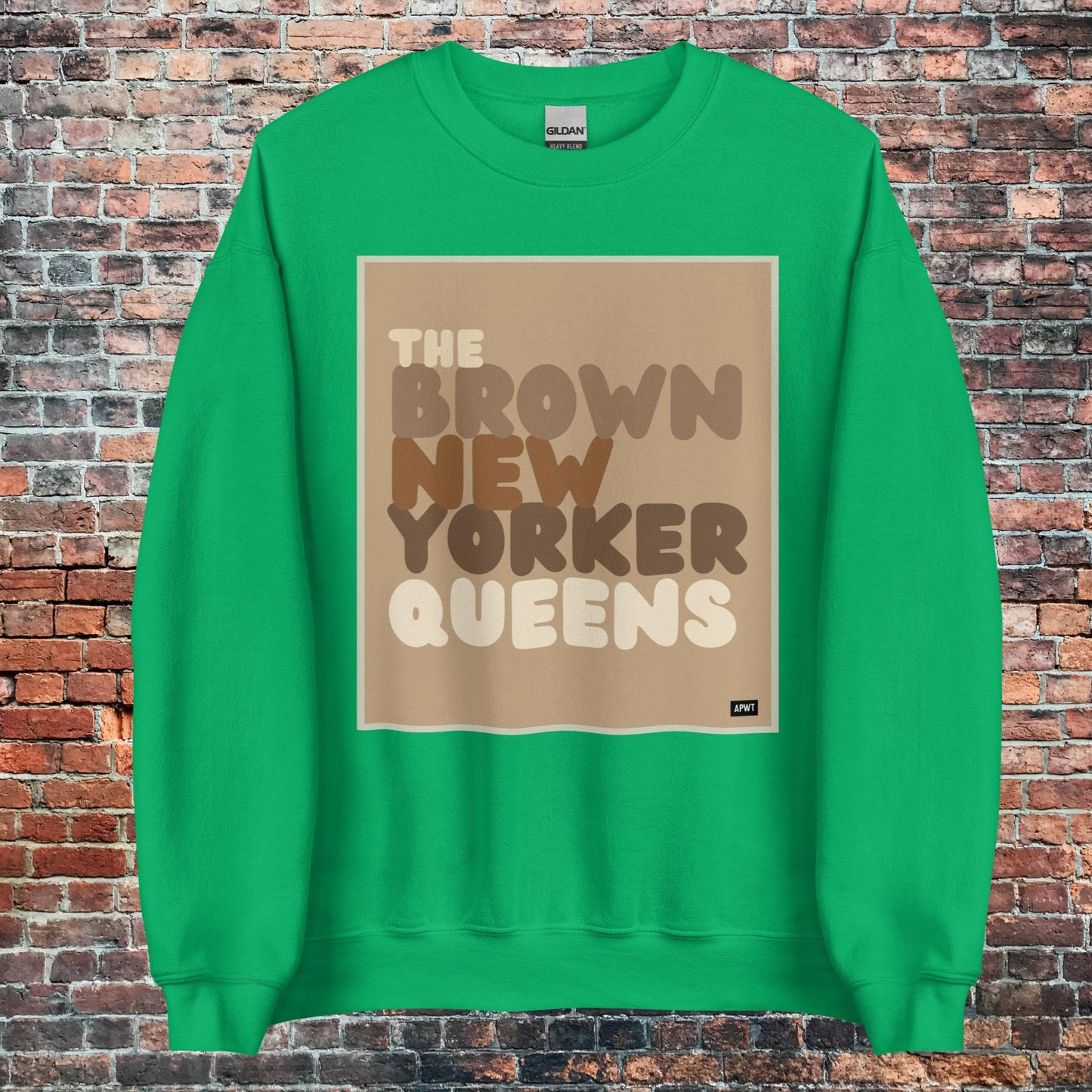 Design: The Brown New Yorker Queens Unisex Crew Neck Sweatshirt image is an original design by the APWT Design Team. The color combinations, image size, and sweatshirt fit were selected and designed to showcase the image but also be fun and stylish.