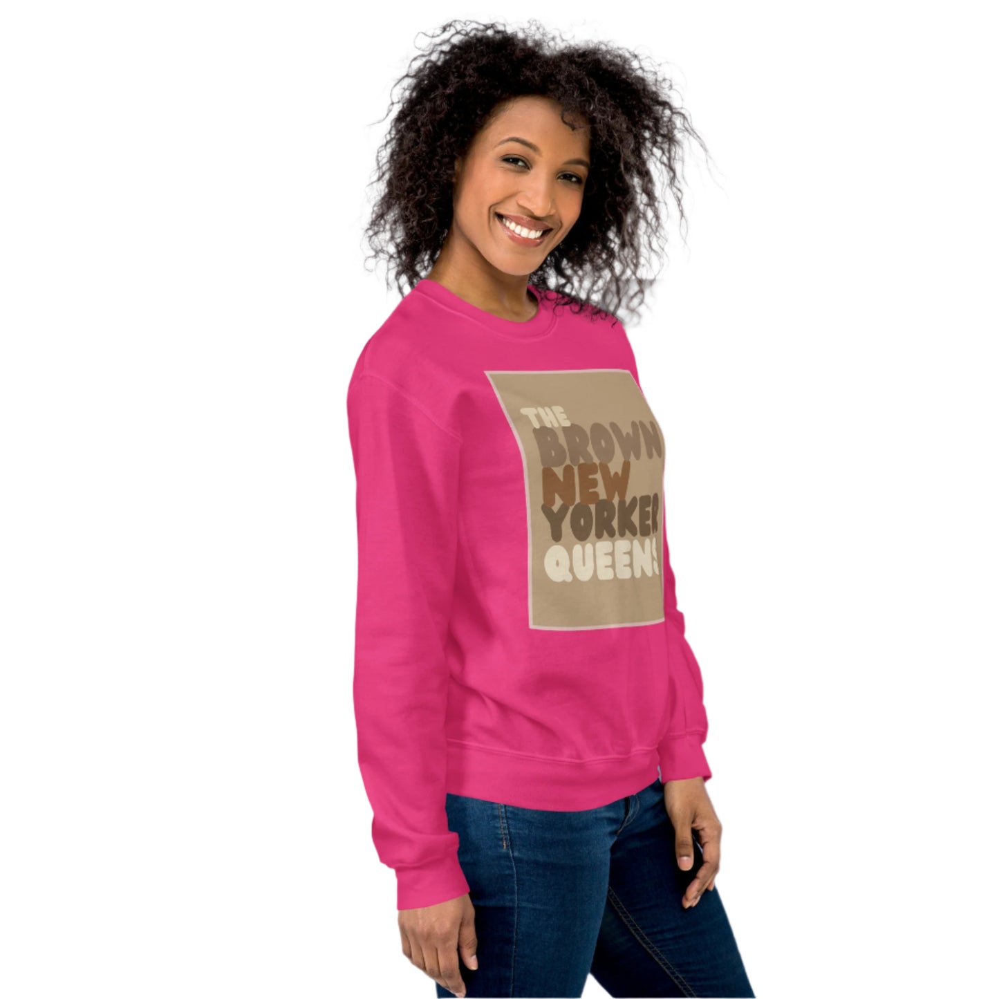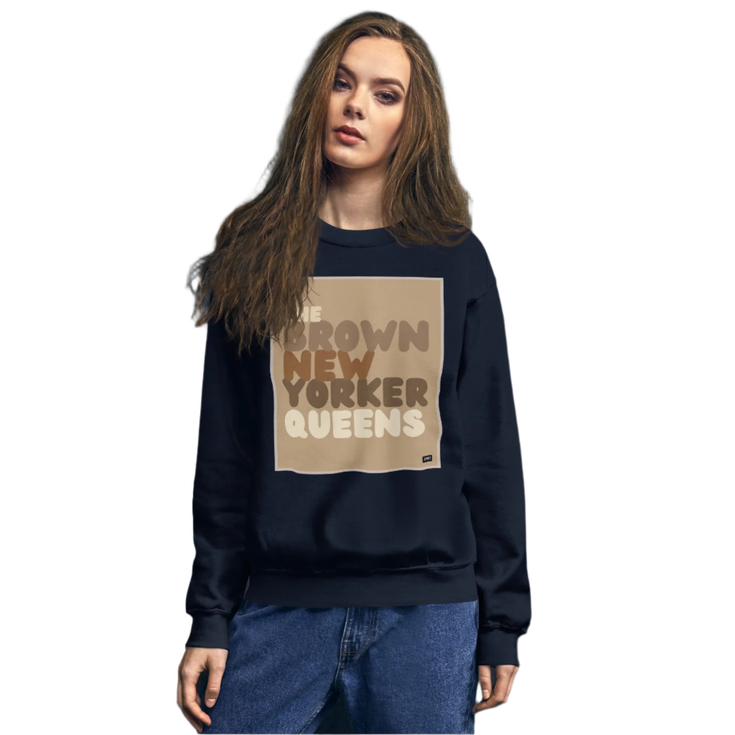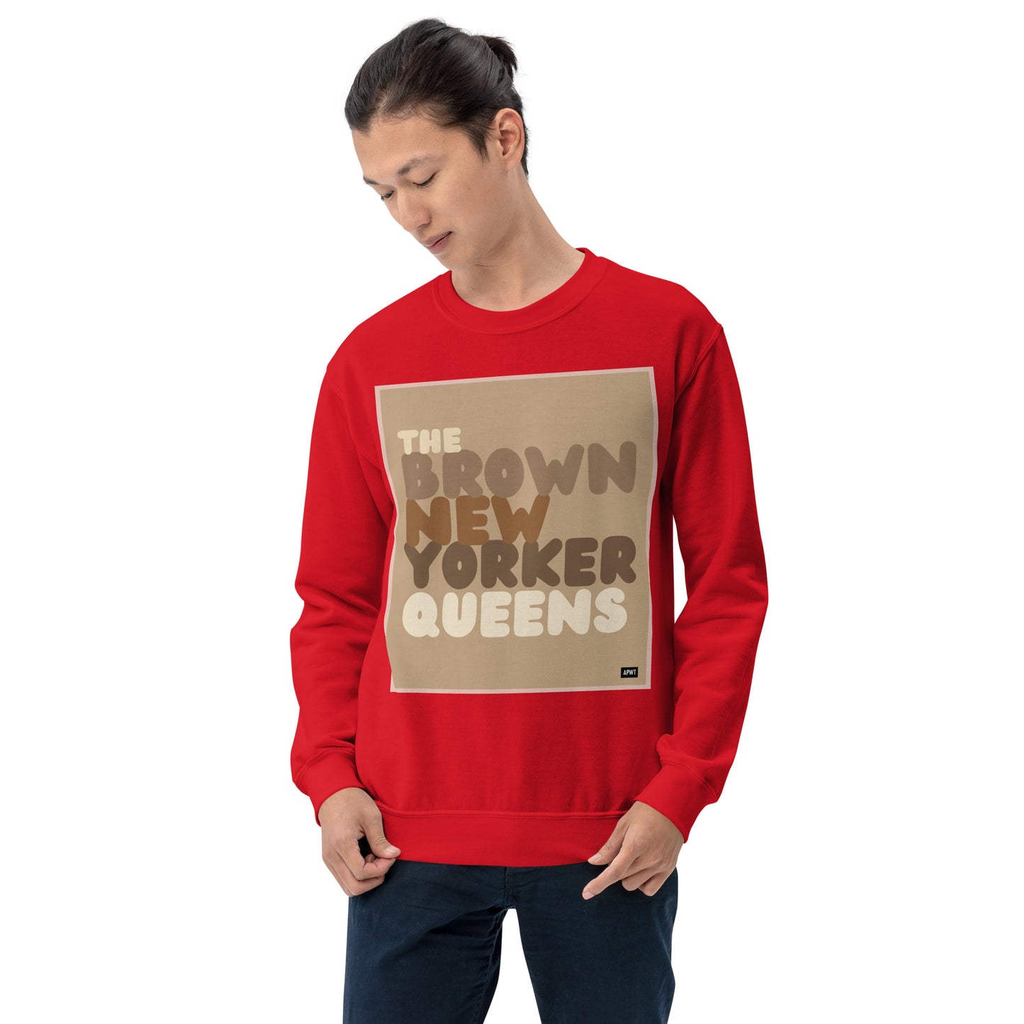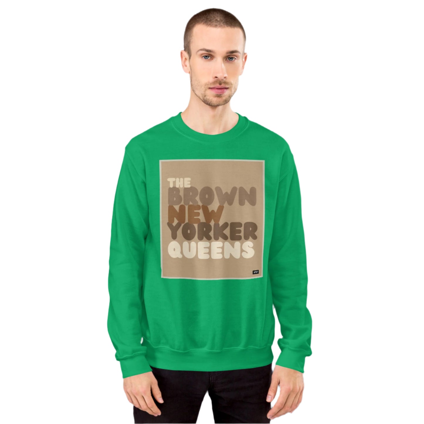 Design: The Brown New Yorker Queens Unisex Crew Neck Sweatshirt image is an original design by the APWT Design Team. The color combinations, image size, and sweatshirt fit were selected and designed to showcase the image but also be fun and stylish.